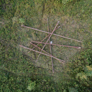 A sphere and a hundred dots. A balloon hovering over the dam at Nærsnes. Several hundred meters away in a part of the woods dominated by spruce, the trunks of hundred trees are…
